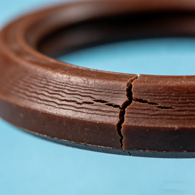 الأسباب: عدم مواءمة درجة الحرارة مع المادة (مثل استخدام المطاط النتريلي «NBR» عند درجات حرارة تزيد عن ١٠٠°م)؛ أو التعرّض للأوزون أو الأشعة فوق البنفسجية (في الاستخدام الخارجي)؛ أو عدم التوافق الكيميائي بين الختم والمواد التي يتعرض لها.